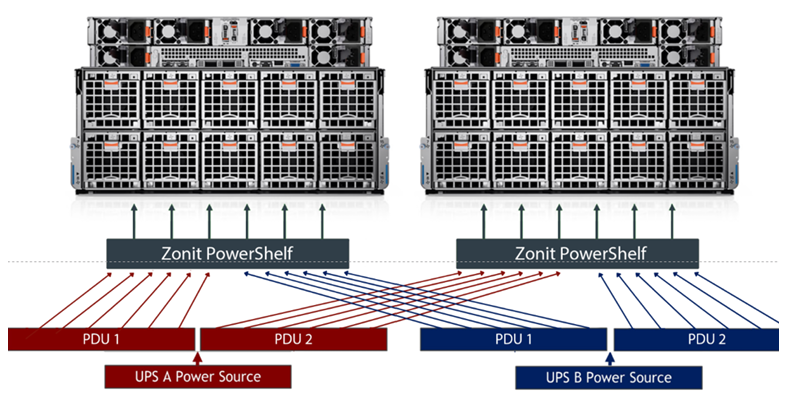 Le Zonit Z-ATS a été conçue pour offrir la solution de double redondance d'alimentation la plus efficace au monde pour les serveurs d'IA dotés d'une matrice d'alimentation asymétrique 5+1, 4+2 ou autre. Cette solution garantit des performances optimales aux serveurs d'IA lors d'opérations de maintenance et en cas de coupures de courant. Grâce à sa commutation automatique entre la source d'alimentation principale (A) et la source de secours (B), l'alimentation reste ininterrompue, permettant ainsi aux équipes informatiques de planifier la maintenance des alimentations sans aucune interruption de service ni impact sur les opérations.